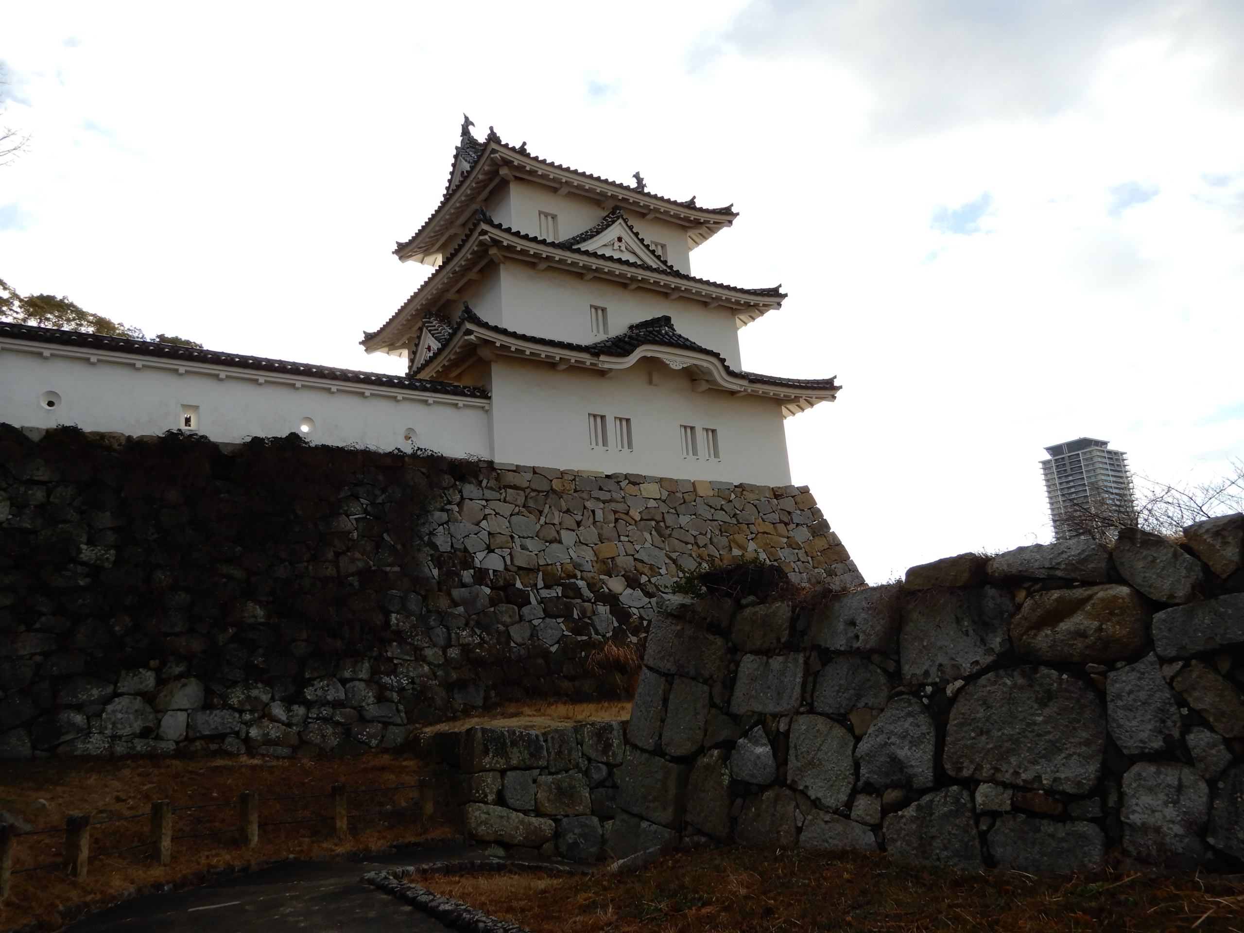 明石城は実に横幅が広く、その両端に現存櫓が残っているので、少し離れている駅だと両方の櫓が綺麗に写ります。