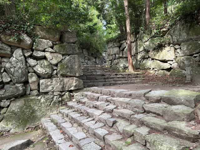 石階段で左右には立派な石垣が残っています。