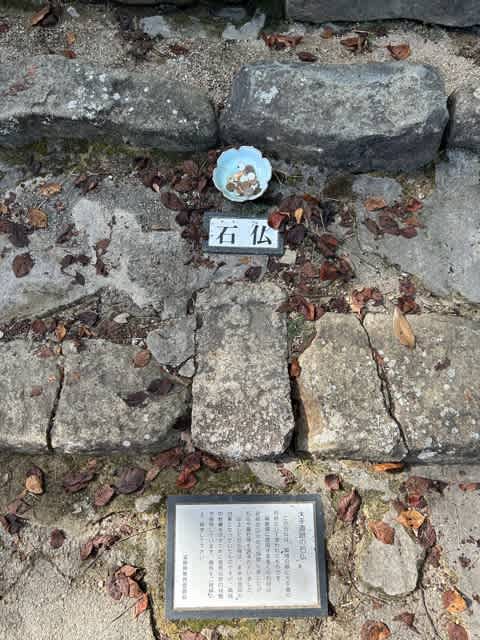 石階段にはお墓や地蔵なども使われていて、様々な場所から石を調達したことが分かります。