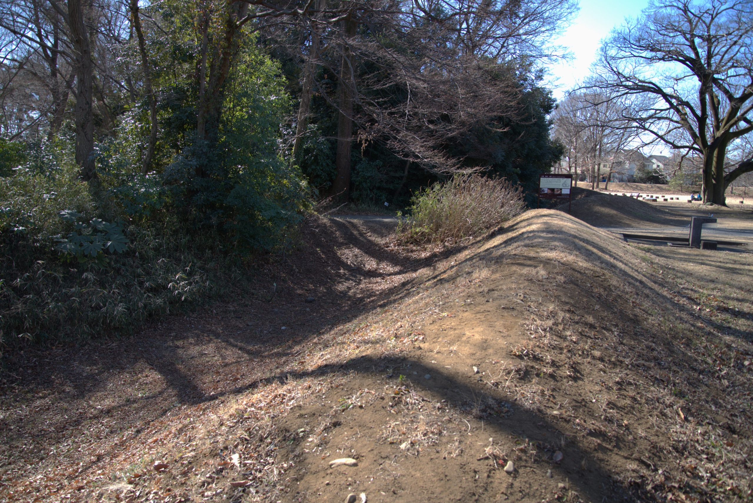 横堀と土塁。これだけの立派な遺構を都心から近い場所で見れるのは、ある意味奇跡といえるのではないでしょうか。