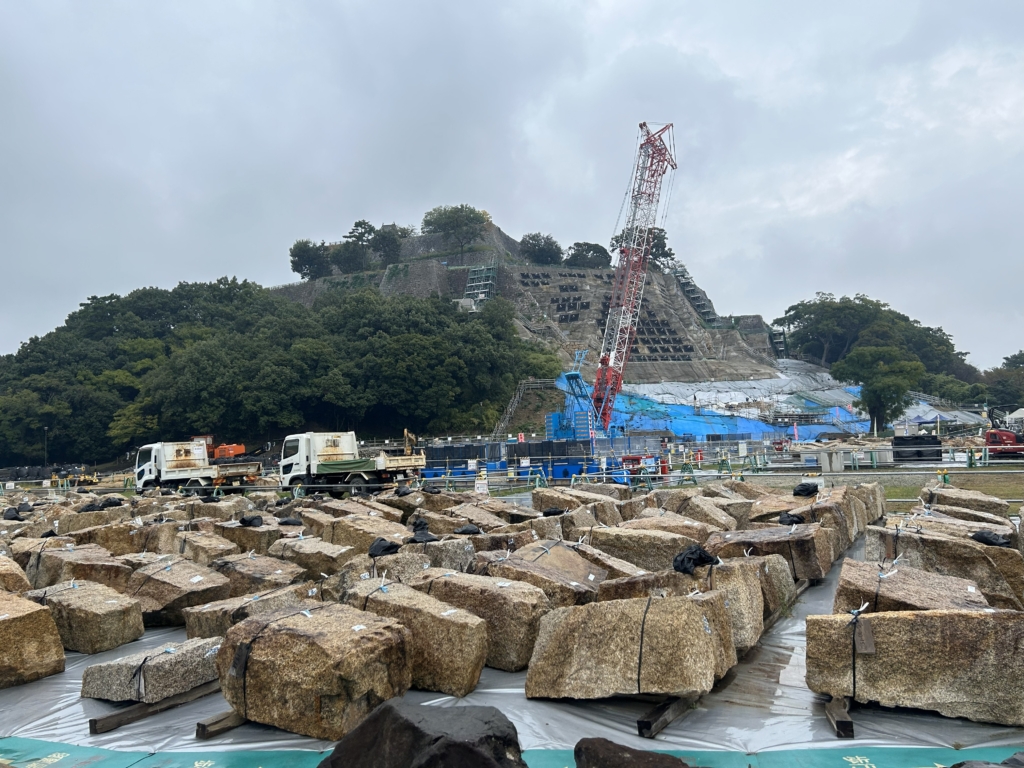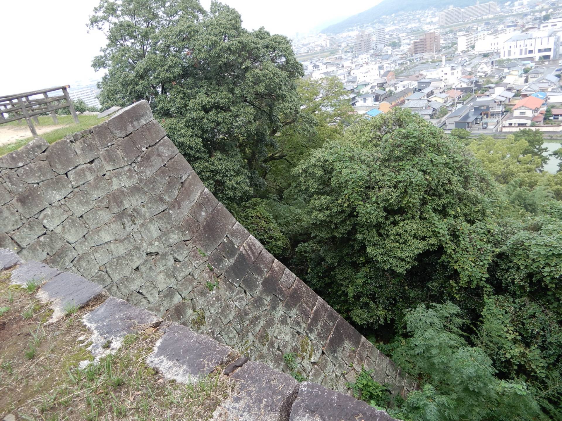 広島、岡山、愛媛の3県を中心に200人以上が犠牲となった西日本豪雨の影響で、同年7月7日、丸亀城「帯曲輪(おびぐるわ)石垣」南面の一部が損壊。