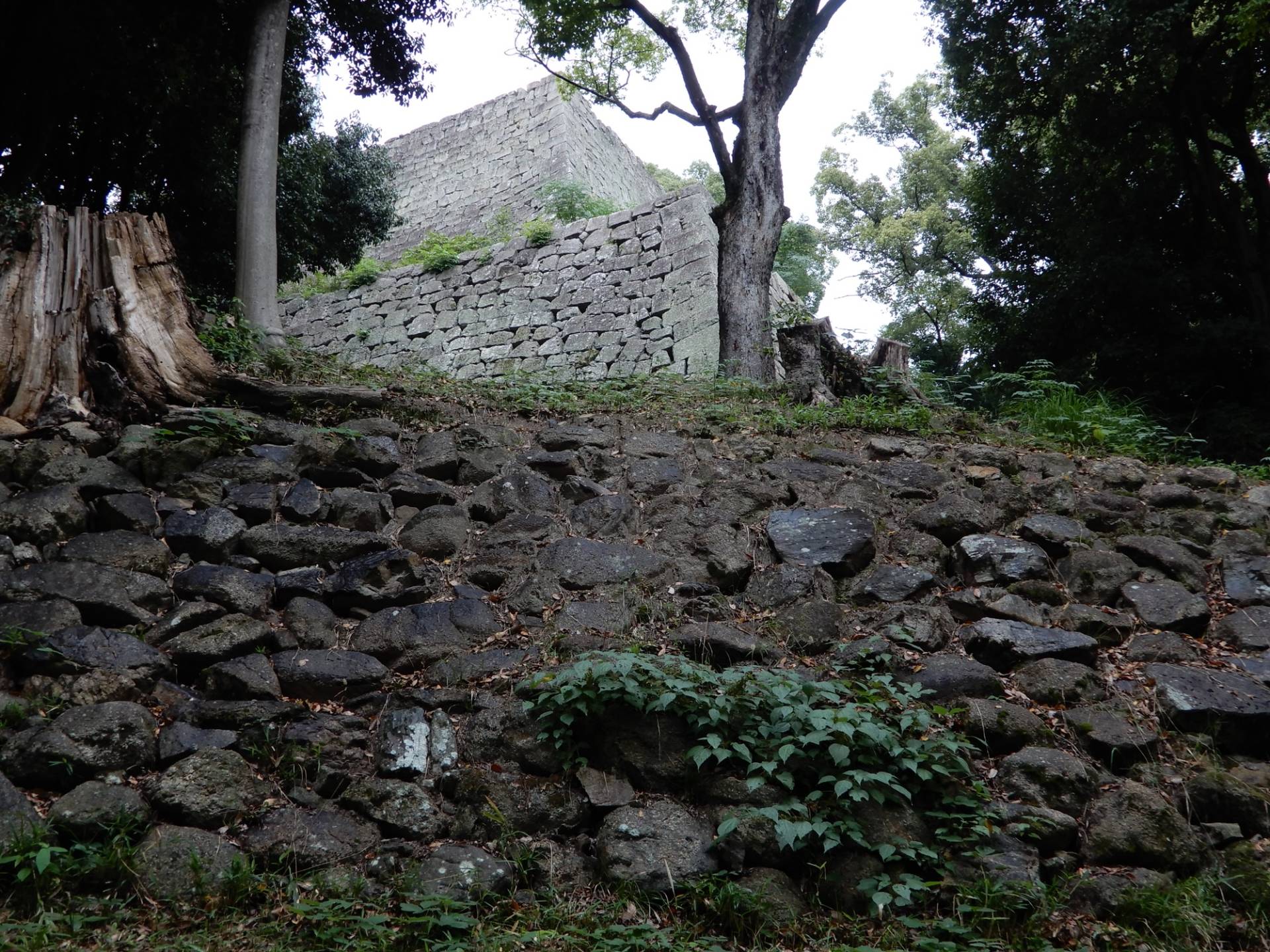 石垣が崩落したことで、表面に見えている石垣の下にはさらに石垣が積まれていることが判明し、31メートルの高石垣であることが分かった。全国でも大坂城に次ぐ2番目の高さである。さらに石垣の中からは五輪塔などの転用石も多く発見された。