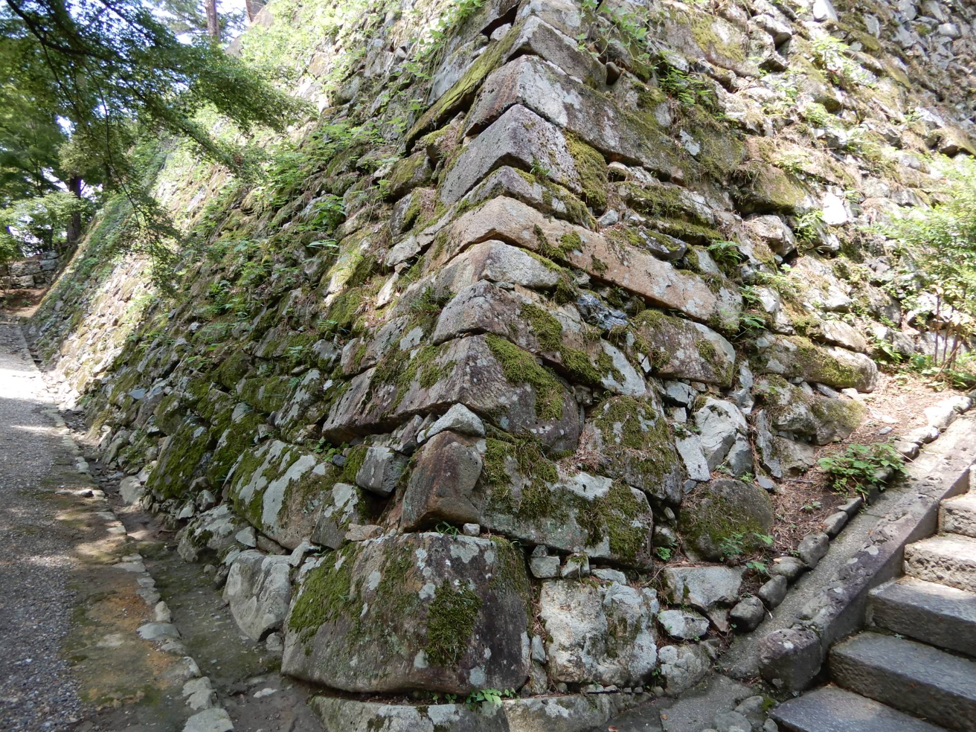 ■本丸跡には明智光秀が築いた石垣が今でも残っており、目の前で見ることができる。