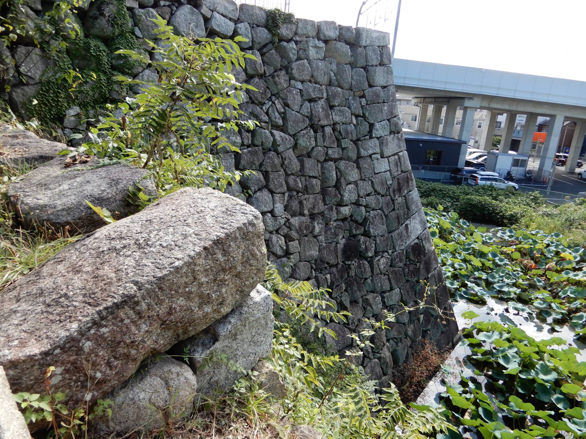 遺構石垣、堀、天守台、本丸跡、二の丸跡等