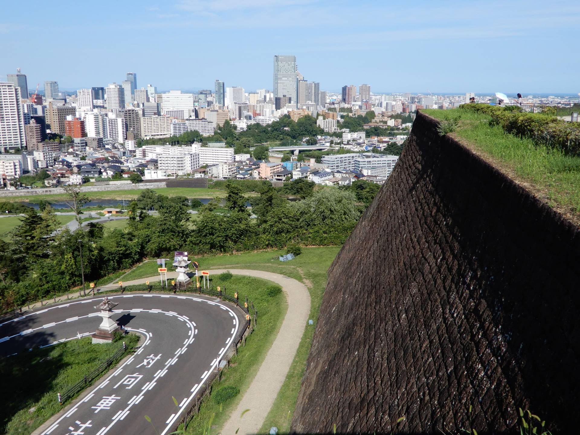 仙台城 本丸北壁石垣と仙台の町並み