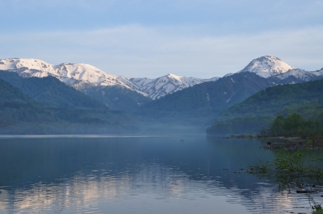 湖底には、昭和4年に完成した初代のダムが水没している。