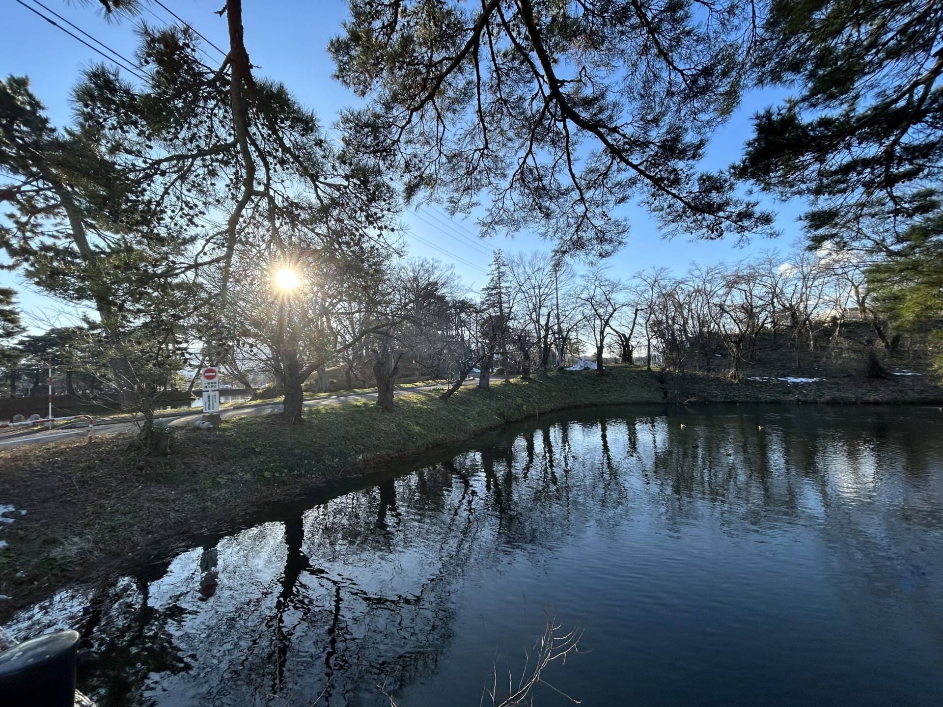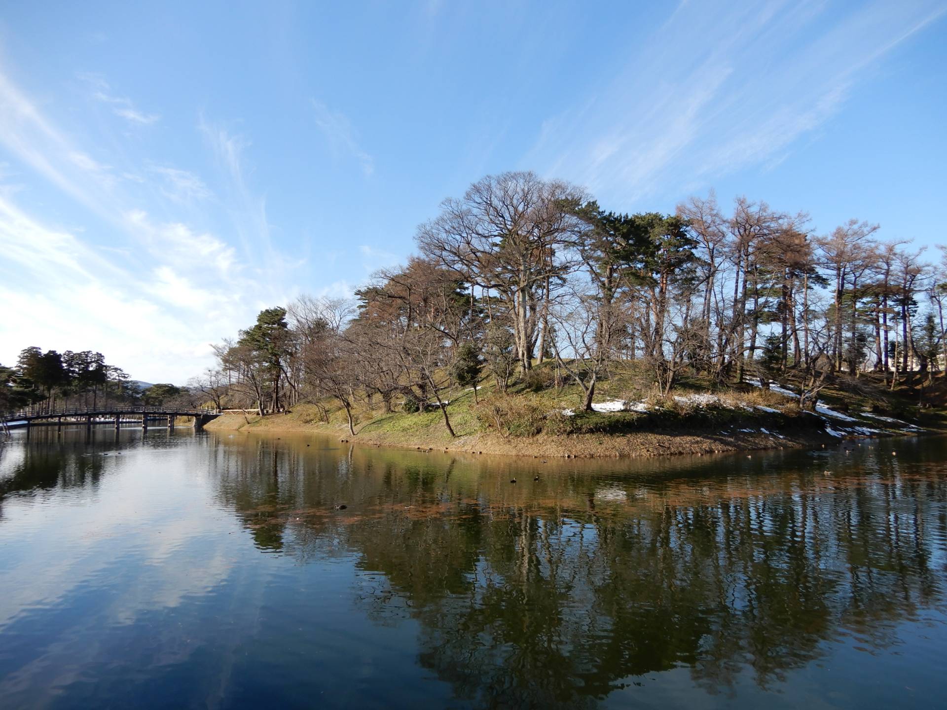 南北1km,東西600mの規模を誇る巨大城郭だった高田城は、公園として整備され水堀や本丸の土塁が残ります。