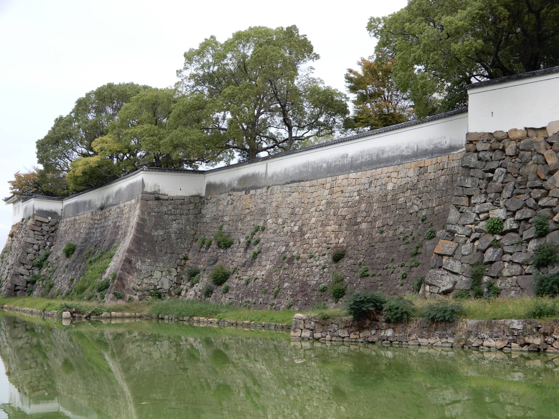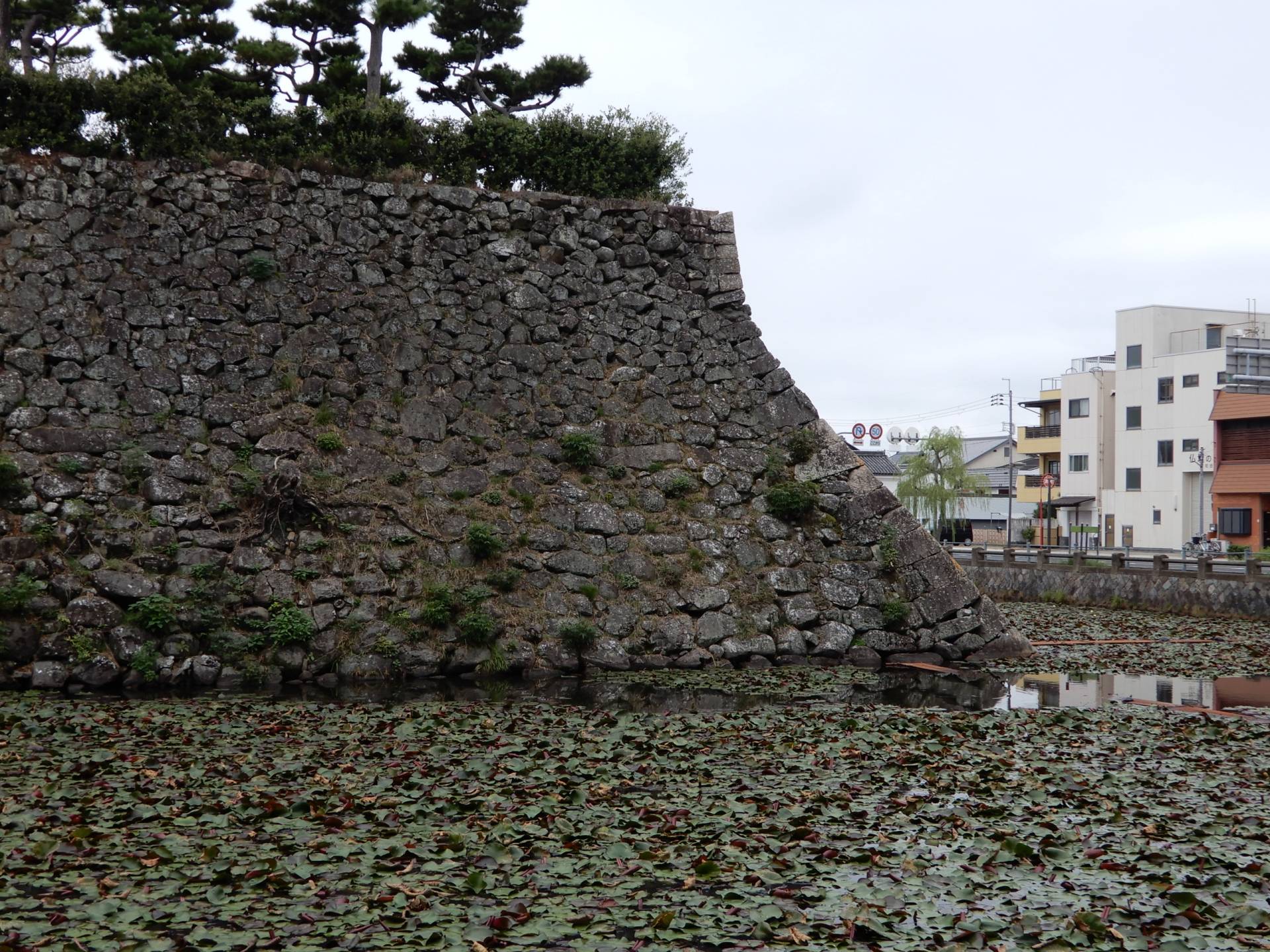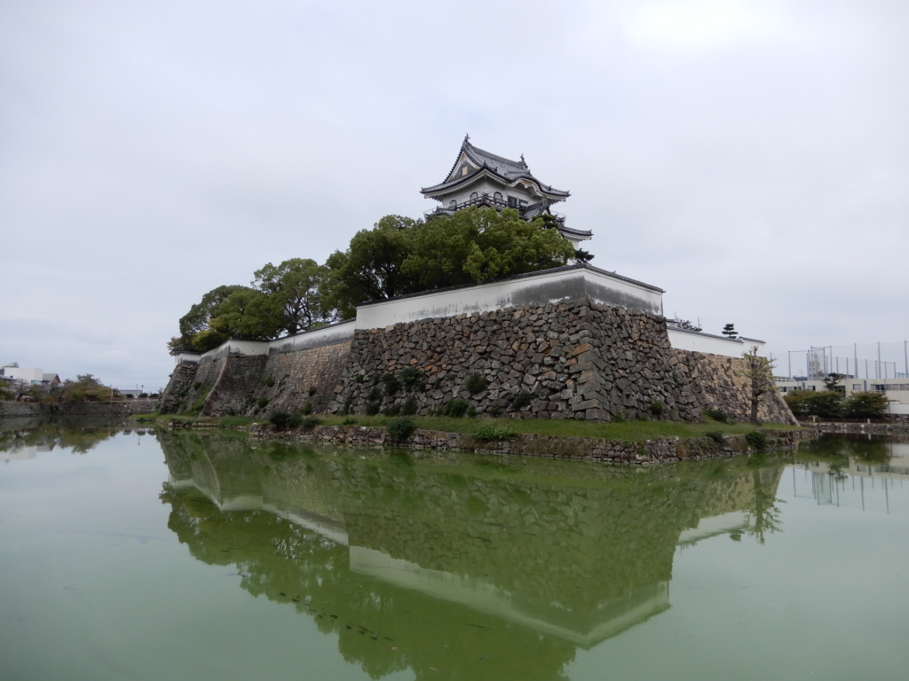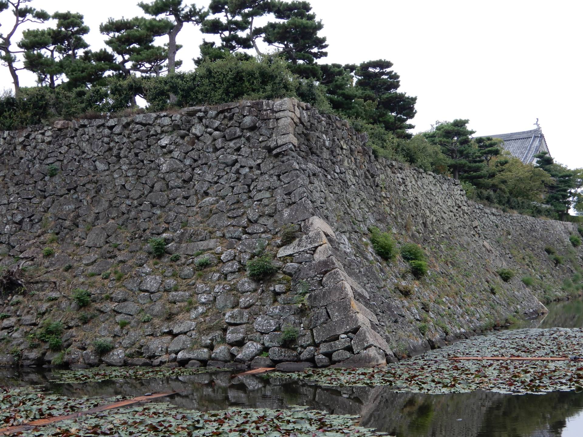 水堀と石垣は美しく、本丸の石垣には南東および南西側下部には「犬走り」と呼ぶ周堤帯が存在します。