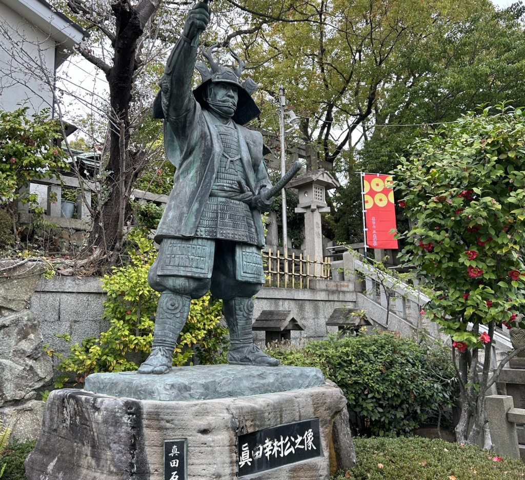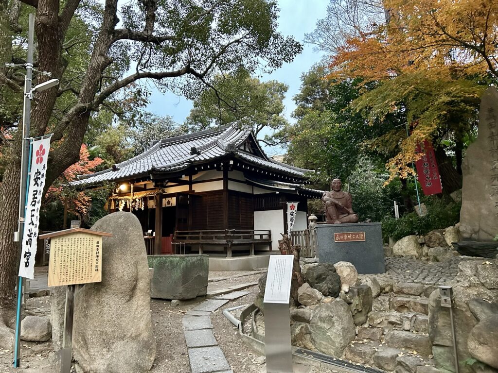 大坂夏の陣で徳川軍の本陣を攻めて、徳川家康を最後まで追い詰めた戦国最後のヒーロー真田信繁。疲れ果てた信繁は、最後はこの安居神社の境内で戦死したと伝わる。