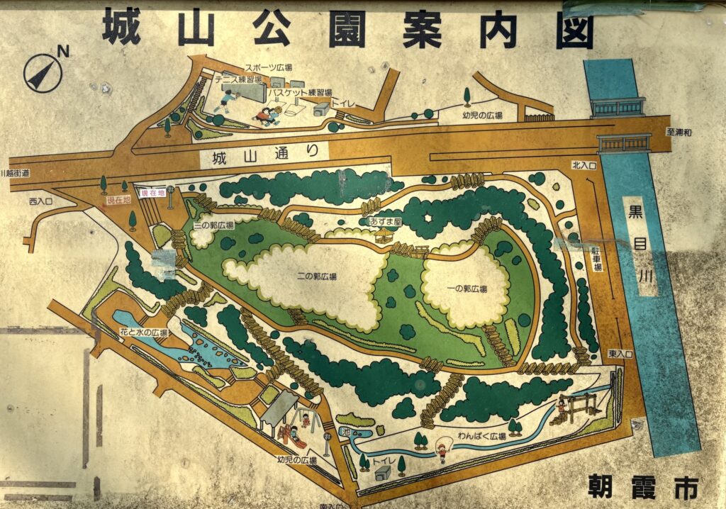 埼玉県朝霞市にある武蔵岡城は、現在城山公園として整備されています。黒目川を背後に小高い山となった場所に築かれているのが特徴です。