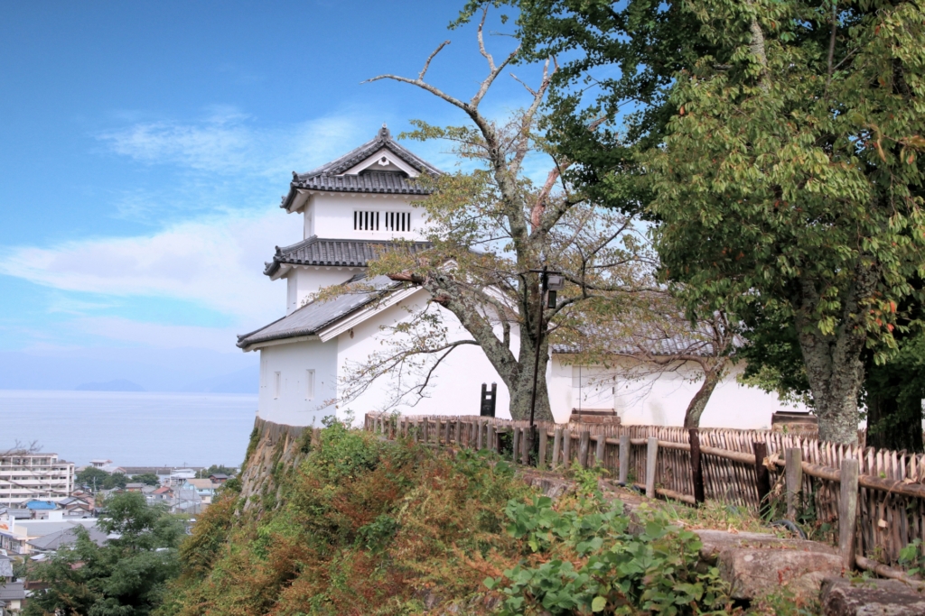 徳川家康の命により、天下普請によって築かれた城。築城の名手と謳われた藤堂高虎に最初につくらせた城で、日本三大湖城のひとつに数えられる。幾つかの城門は移築されて現存している。