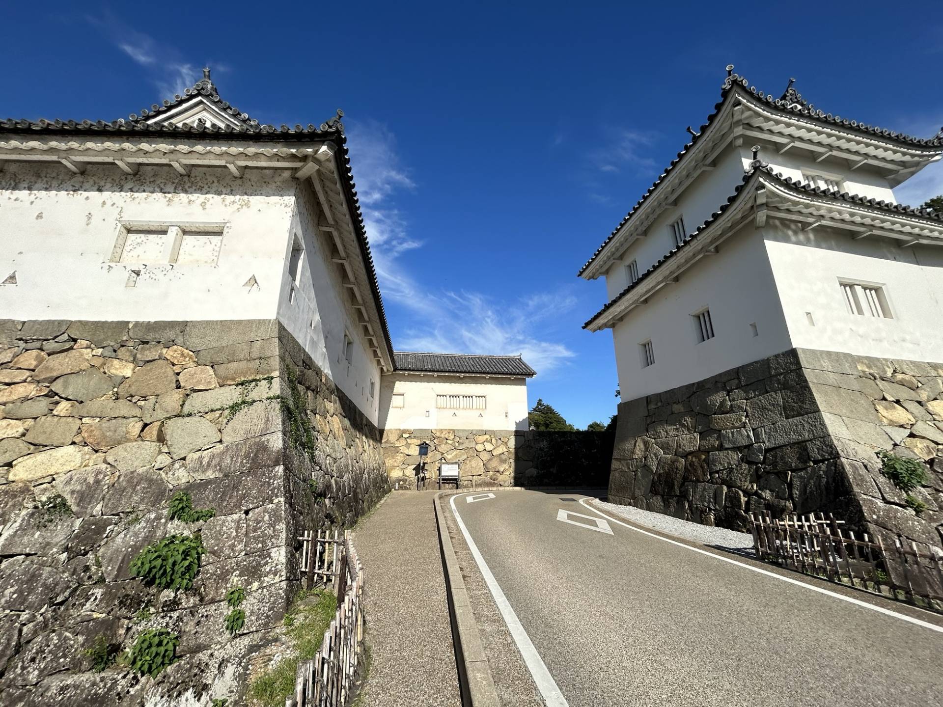 現存する多聞櫓の右端は切妻屋根で不自然に途切れ、石垣のみの空地が広がります。