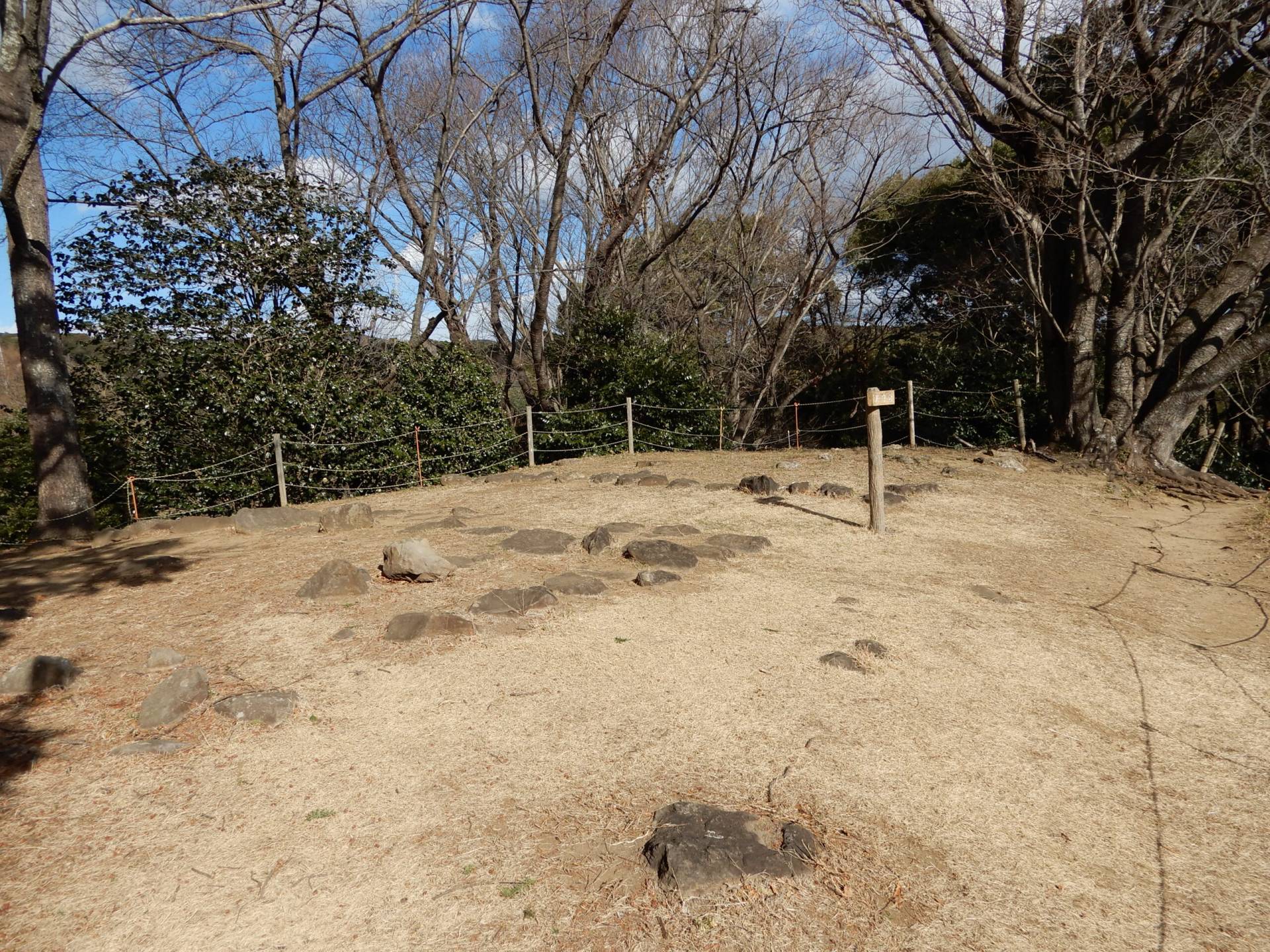 ■城門跡:規模は東西約5.4メートル南北3.6メートル。東西に幅20メートルほどの土塁基底部が確認されている。