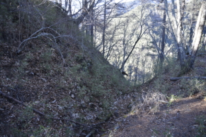 | 岩殿城【続日本100名城】 岩殿城【大月市】 武田氏滅亡に関わる城。両側が急崖で長い尾根が魅力的で、富士山の絶景を見ることができる ![]() 遺構:曲輪、横堀(空堀) | |