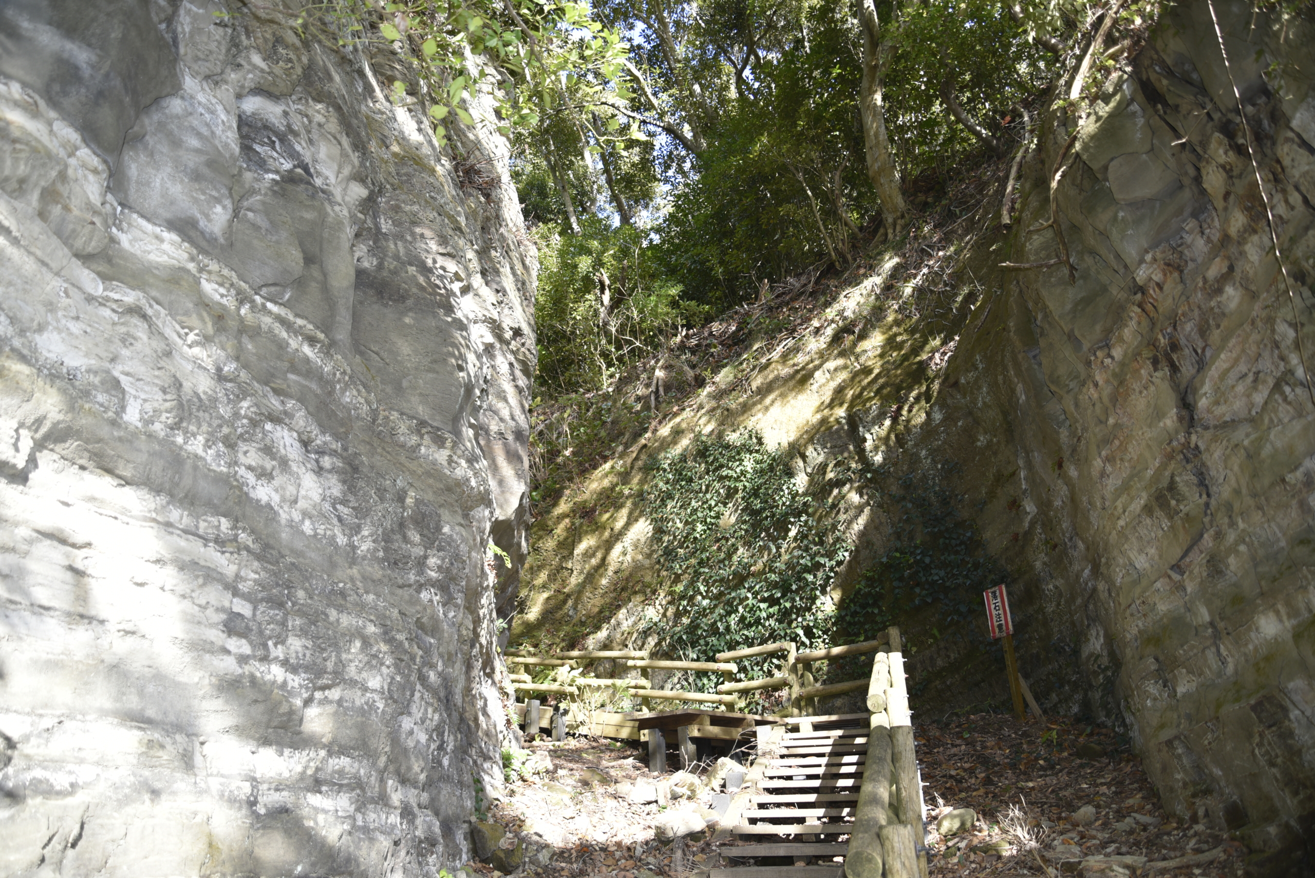 振り返っての一枚。高さのある岩盤の切通に、疲れなど一気に吹き飛びます。
