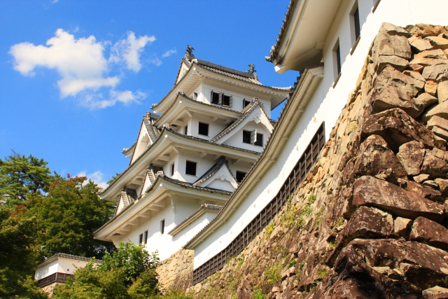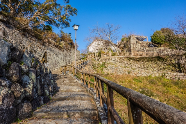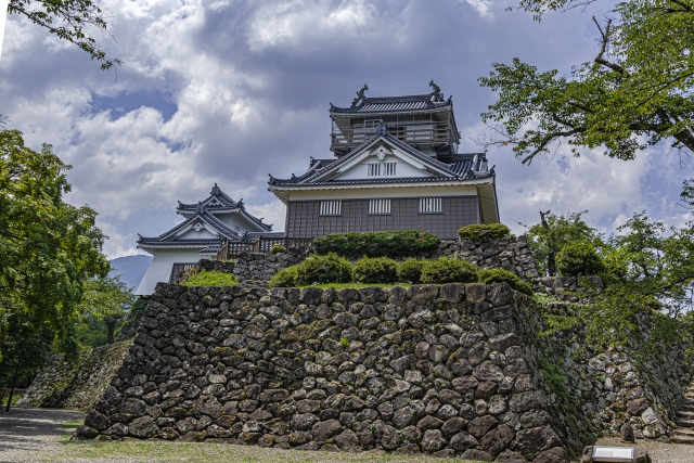 「一国一城令」後に築かれた城で、本丸石垣や天守台が残っている