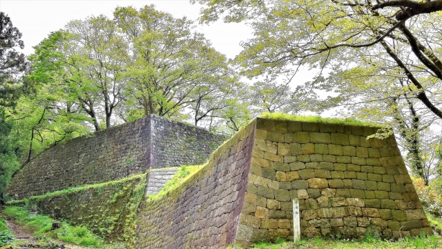 「千人殺しの石垣」と呼ばれる高さ19mの迫力ある石垣が有名な城