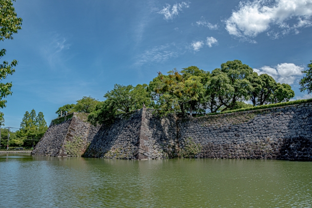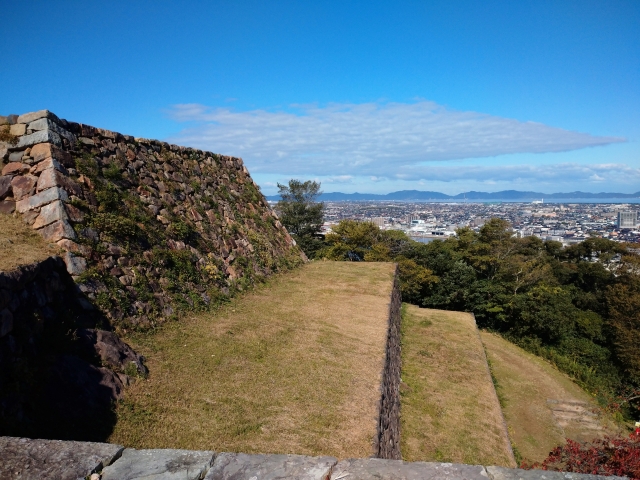 黒田氏が築き細川氏が改修。今も黒田氏時代の石垣を見る事ができる。