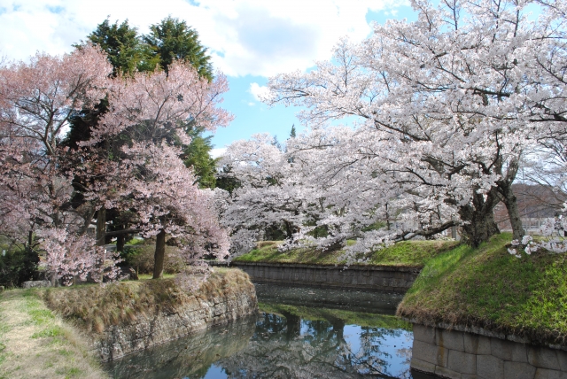 異なる時代の石垣が残る三春藩の藩庁が置かれた城。